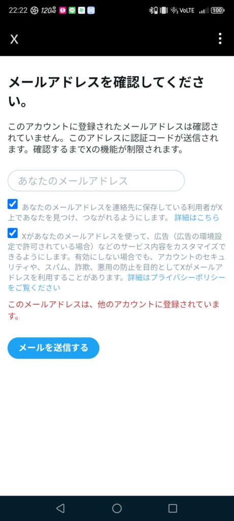 たまたま作ったばっかりのXでメールアドレスも登録できてない…どないしよ!!